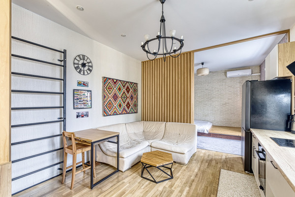 · Адрес: г. Апрелевка, 5-этажный кирпичный дом.· Площадь: 40 кв. м.· Этаж: 2-й· Комнаты: 1 (с зонированием на спальную и гостиную зоны), потолок - 3 метра, что создает ощущение простора, улучшает циркуляцию воздуха и дает больше возможностей для дизайна и хранения. В комнате установлена сплит система.· Ремонт: Эксклюзивный дизайнерский ремонт с использованием дорогих натуральных материалов.· Мебель и техника: Вся мебель изготовлена по индивидуальному проекту и остаётся. Остаётся вся встроенная бытовая техника.Описание:Предлагается к продаже не просто квартира, а готовая к проживанию работа дизайнера. В отделке использованы дерево, камень и другие натуральные материалы. Большая комната грамотно разделена деревянной перегородкой на две функциональные зоны, что создает ощущение просторной студии с приватной спальной территорией.Вся мебель, которая идеально вписана в пространство, изготовлена на заказ и остаётся новому владельцу. Это решение для тех, кто ищет уникальное жильё с характером, не требующее дополнительных вложений.Расположение:· Тихий 5-этажный дом в Апрелевке.· Спокойная и зелёная территория.Квартира ждёт своего ценителя качества, стиля и уюта.Арт. 123361847