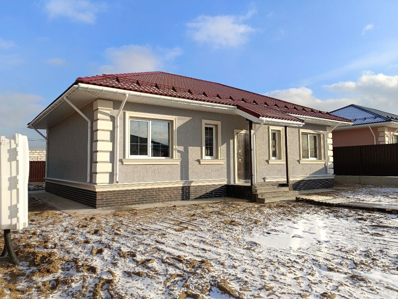 От застройщика! Новый одноэтажный коттедж 117,6 кв.м с отделкой White box на участке 6 соток в КП «Новая Дятловка». Отделка White box: В доме установлены межкомнатные стены; выполнена разводка всех коммуникаций; натяжной потолок; оборудована котельная под ключ. Планировка по проекту: 1 этаж Просторная кухня-гостиная 36 кв.м с окнами на три стороны света и панорамной дверью на крытую террасу 12 кв.м; 3 изолированные комнаты 12/14/14 кв.м, ванная комната, гостевой с/у, бойлерная, гардеробная. Высокие потолки - 3 метра. Коммуникации в доме: Электричество, магистральный газ, автономная канализация, вода – индивидуальная скважина, отопление от газового котла. Земельный участок: 6 соток, ровный правильной формы. Назначение - индивидуальное жилищное строительство (ИЖС), прописка – д. Дятловка, г.о. Балашиха Вы можете прикрепиться к садику, школе, поликлинике. Коттедж построен из высококачественных материалов с соблюдением всех технологий: - Фундамент: Свайный с ростверком (монолитный с армированием) с заглублением 3 м; - Стены: Газобетонный блок Бонолит, толщина внешних стен 400мм; - Фасад: Штукатурка, покраска, Цоколь утеплен и облицован термопанелями, выполнена отмостка; - Кровля: Четырехскатная из метало-черепицы с установкой снегозадержателей и водосточной системы; - Окна: Металло-пластиковые двухкамерные стеклопакеты с поворотно-откидным механизмом; - Крыльцо с навесом. - Терраса с навесом; - Входная металлическая утепленная дверь; - Забор - металлический штакетник высотой 2м. О поселке: Асфальтированные дороги. Общее освещение. Закрытая территория. В поселке оборудована детско-спортивная площадка с воркаутом и зоной отдыха. Чистый и свежий воздух, удаленность от трасс и многоэтажек, тишина и уединение с природой и при этом оптимальное расстояние до города - всего 3 км от мкр. Железнодорожный и 17 км от МКАД. Ближайшие станции метро: Новокосино, Железнодорожная, Некрасовка. Инфраструктура: Все поблизости: Детский сад, школа, амбулатория, парк, банк, почта, спортивный комплекс с плавательным бассейном в Агрогородке - 10 мин на авто/автобусе. В д.Дятловка расположена остановка школьного автобуса, где утром забирает, а после уроков привозит ребят школьный автобус. В шаговой доступности Вкус Вилл, Пятерочка, пункты Яндекс/Озон/Валдбериз, аптека и тд. ТЦ, рестораны, кафе, магазины и другая социально-бытовая инфраструктура расположена в городе Железнодорожном - 15 минут на авто. Как добраться: От коттеджного поселка до остановки автобуса 10 минут пешком. Автобус №26 идет до ж/д станции "Черное"- 10 минут, до ж/д станции "Железнодорожная" - 20 минут. Открыт участок автомобильной трассы М12 Москва-Ногинск, легкое метро МЦД-4 (от Апрелевки до Железнодорожного). Продажа от застройщика. Вся стоимость в договор. Одобрение ипотеки и сопровождение сделки - бесплатно. Индивидуальная рассрочка до 12 месяцев. Скидка 3% для многодетных семей и участников СВО! Добро пожаловать в Новую Дятловку!