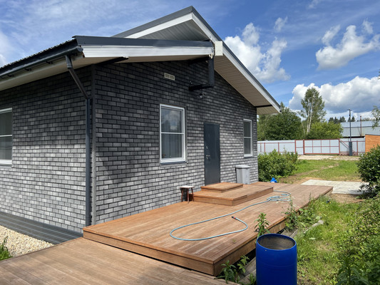 Арт. 108903099 Новый готовый дом в тихом поселке.ВОЗМОЖНА ИПОТЕКА.Продается полностью готовый стильный 1-эт. коттедж 70,5 м2 в СНТ Подкова рядом с д. Ногово в Клинском районе.Новорижское или Волоколамское шоссе, также трасса М-11. 89 км от МКАД.Поселок расположился на лесной поляне в тупике. Очень тихо и зелено. Вокруг на многие километры лес.Автоматические ворота на въезде, открываются с брелка. Круглосуточная охрана.Уличное освещение с датчиками темноты. Ровные улицы, отсыпанные асфальтовой крошкой. Глубокие дренажные канавы.В поселке обустроены детская и спортивная площадки.Участок с домом расположен на высоком месте в середине поселка.Полностью готовый 1-эт дом 70,5 м2 построен в 2024г по индивидуальному проекту. Теплая каркасная технология. Доска 1-го сорта, утепление стен, пола и потолка 250 мм. Стекловата плотностью 360мг/см2. Фундамент свайно-металлический (сваи диаметром 108мм внутри залиты бетоном).Глубина до 4,0 м. Обвязка фундамента выполнена из швеллера 20П (по ГОСТу). Снаружи дом обшит мягкой фасадной плиткой Технониколь HAUBERK благородного серого цвета. Цоколь зашит металлическими панелями темного цвета.Окна двойной стеклопакет, толщина профиля 70мм. Крыша металлочерепица, Вокруг дома обустроена отмостка, засыпанная мелкой щебенкой. Под ней обустроен дренаж.Водостоки с выводом воды в дренаж.По фасаду дома обустроены стильные точечные светильники, создающие уютную подсветку в темное время.Высота потолков 2,9 м. На полах ламинат и плитка (холл, с/у и технические помещения).Дом предназначен для круглогодичного проживания. Продается со всей мебелью, бытовой и садовой техникой и оборудованием. На входе дома обустроен высокий настил из террасной доски - лиственница 1 сорта. Надежная металлическая дверь с терморазрывом на входе.Планировка дома: входной холл с кладовой, просторная (28 м2) кухня-гостиная с высокими панорамными окнами, три отдельных спальни (10 м2 каждая), совмещенный с/у с душевой кабиной, компактная ...
