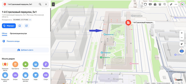 На карте: Московская область, Мытищи, 1-й Стрелковый пер, 5к1